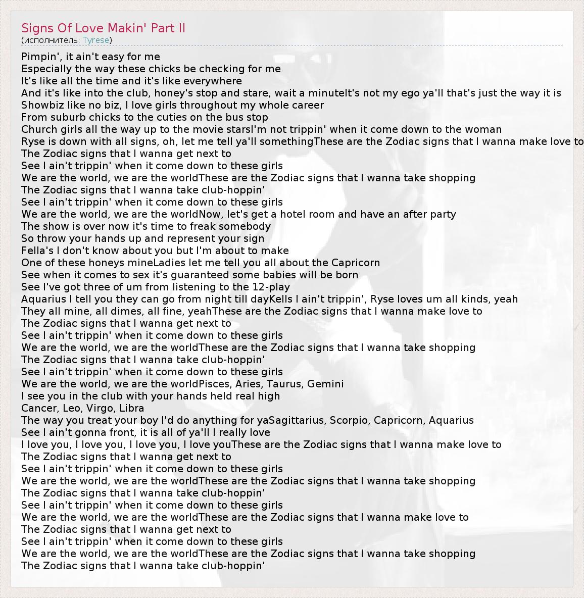 А как ты думаешь, о чем песня "Signs Of Love Makin' Part II" ?