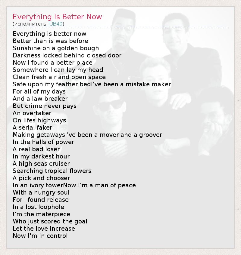 А как ты думаешь, о чем песня "Everything Is Better Now" ?