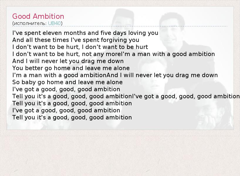 А как ты думаешь, о чем песня "Good Ambition" ?