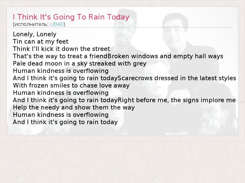 А как ты думаешь, о чем песня "I Think It's Going To Rain Today" ?