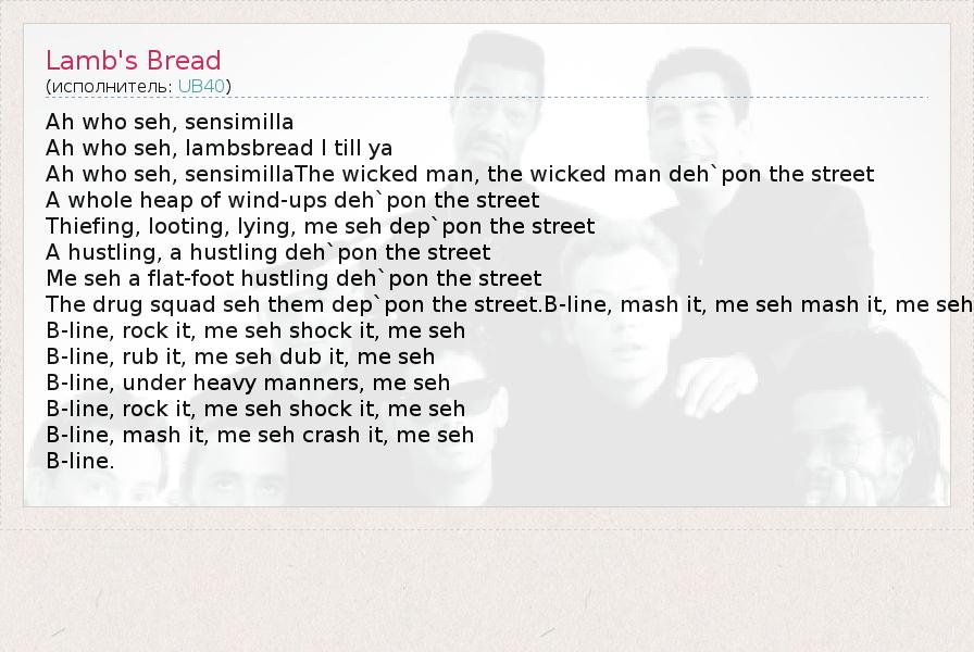А как ты думаешь, о чем песня "Lamb's Bread" ?