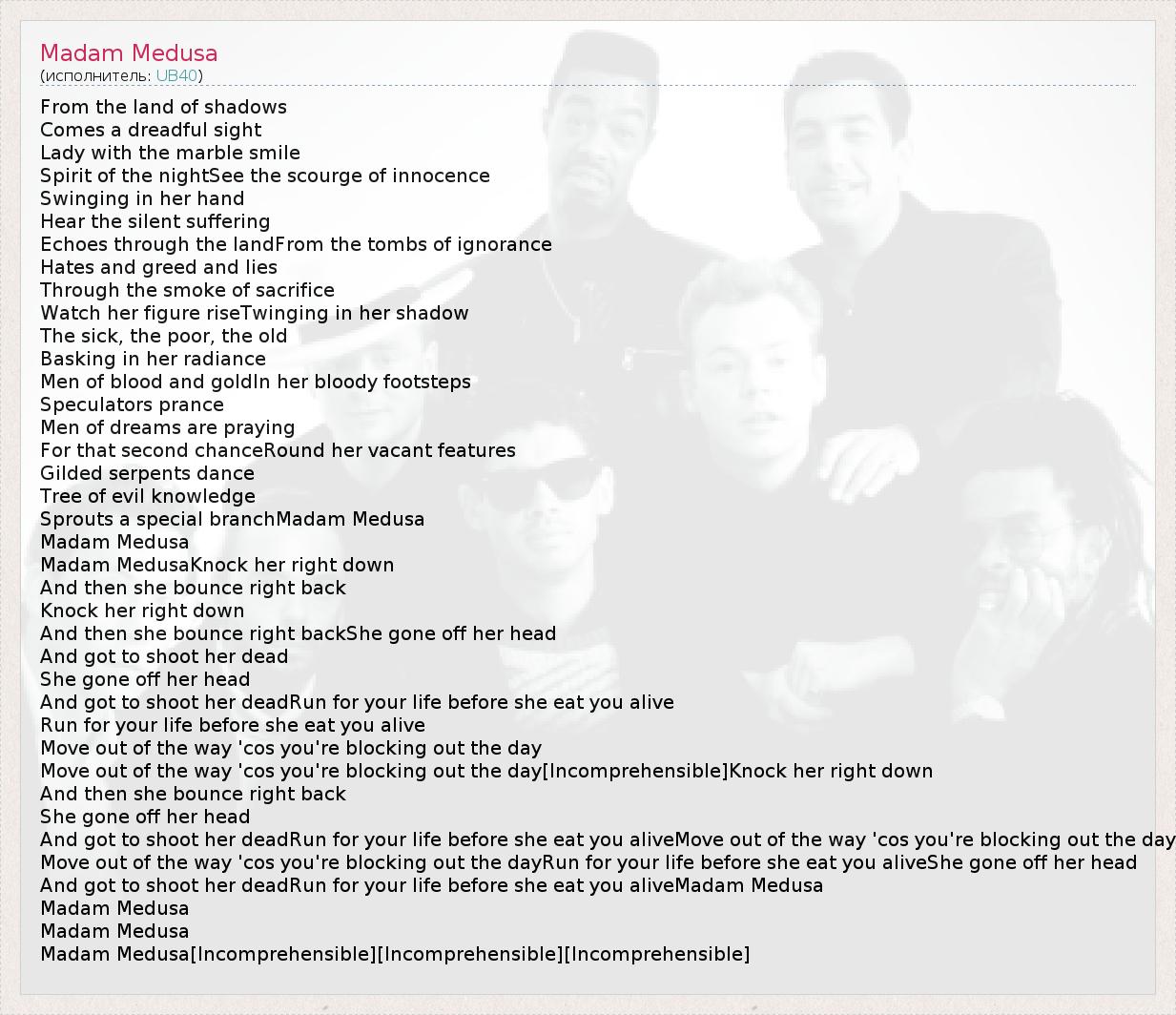 А как ты думаешь, о чем песня "Madam Medusa" ?