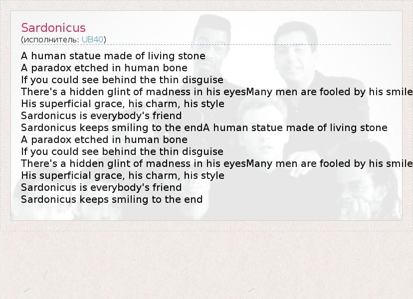 А как ты думаешь, о чем песня "Sardonicus" ?