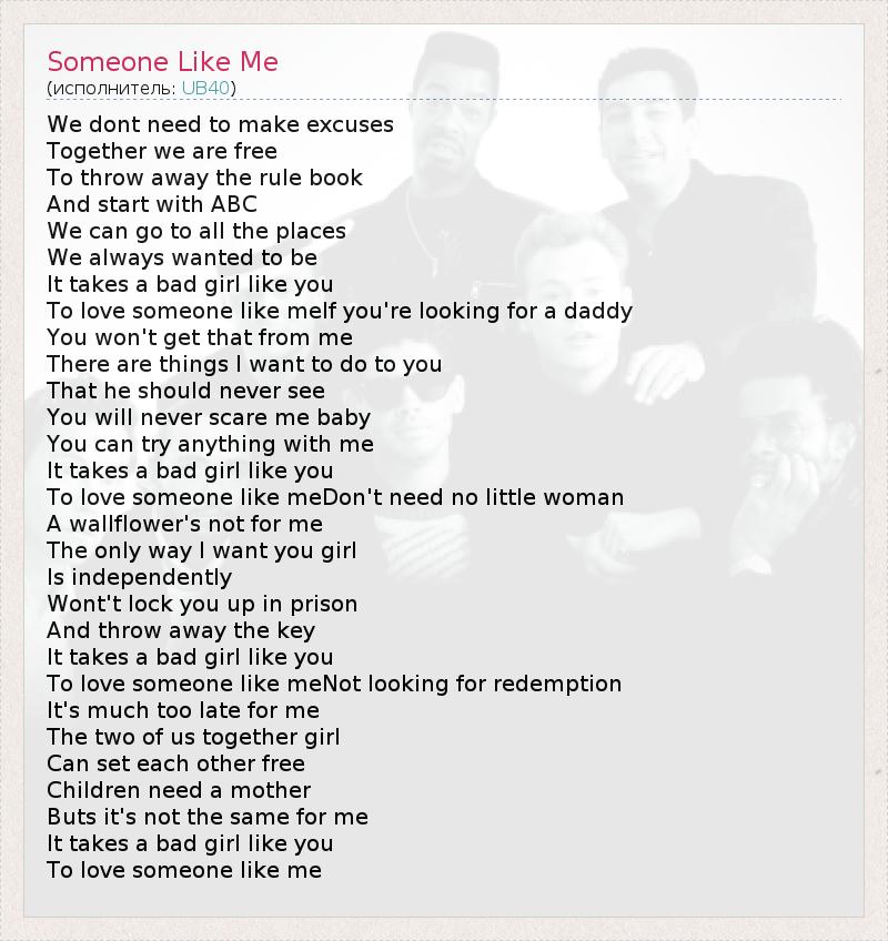 А как ты думаешь, о чем песня "Someone Like Me" ?