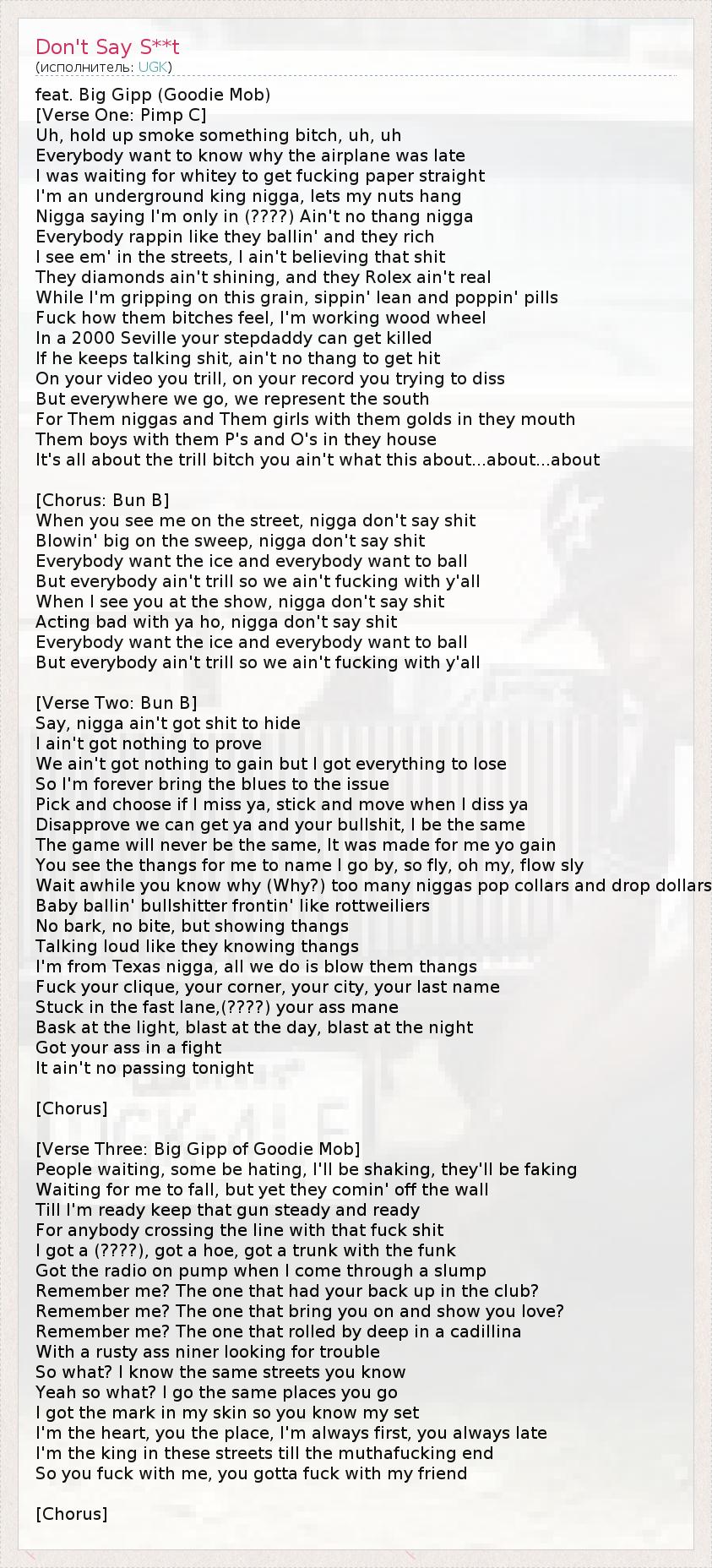 А как ты думаешь, о чем песня "Don't Say S**t" ?