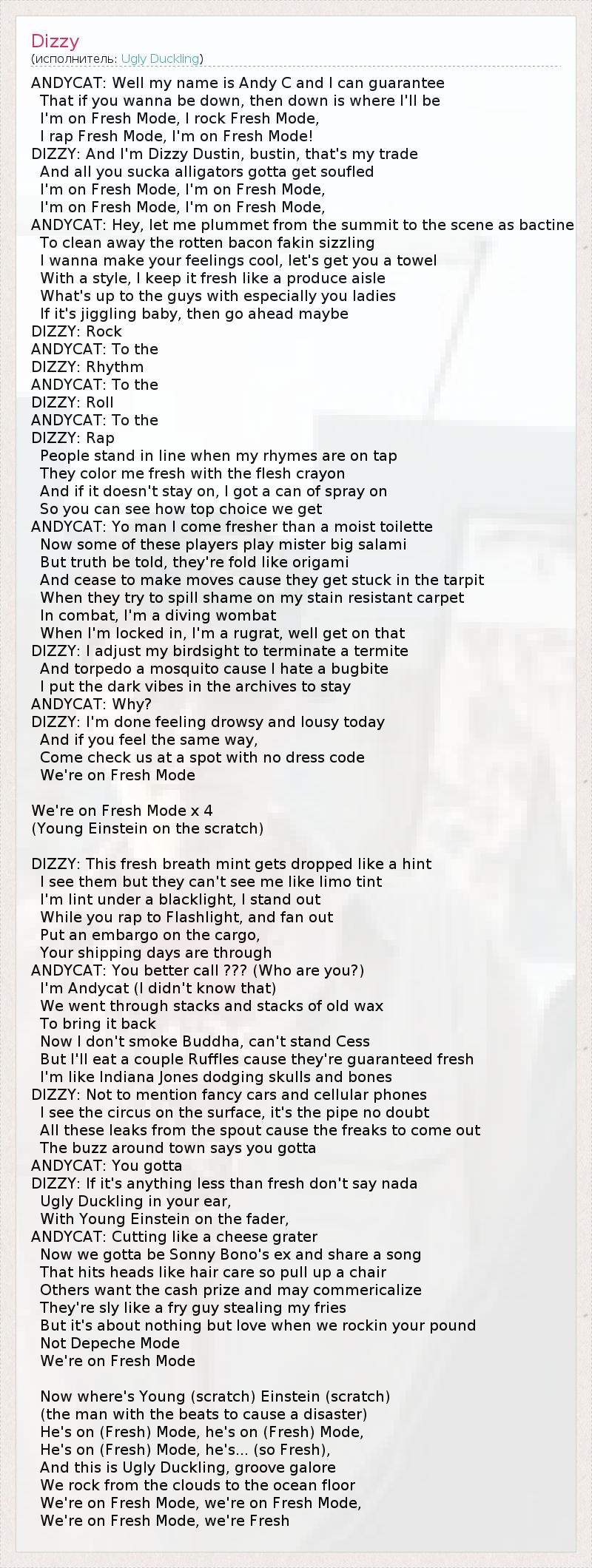 Это интересно:Группа Ugly Duckling, не похожая на остальные команды, попирающие стопами сцену, состоит из трех участников: Andy Cat (Andy Cooper), Dizzy (Dizzy Dustin) и Young Einstein – первые двое "эмсят", последний, будучи диджэем, музицирует. Команда сформировалась в конце 1993 года в самый разгар эры G-Funka. В то время, когда гангста-стилистика, завоевывая страну, расцвела буйным цветом и в родном для UD Long Beach, Энди, Диззи и Юный... продолжение