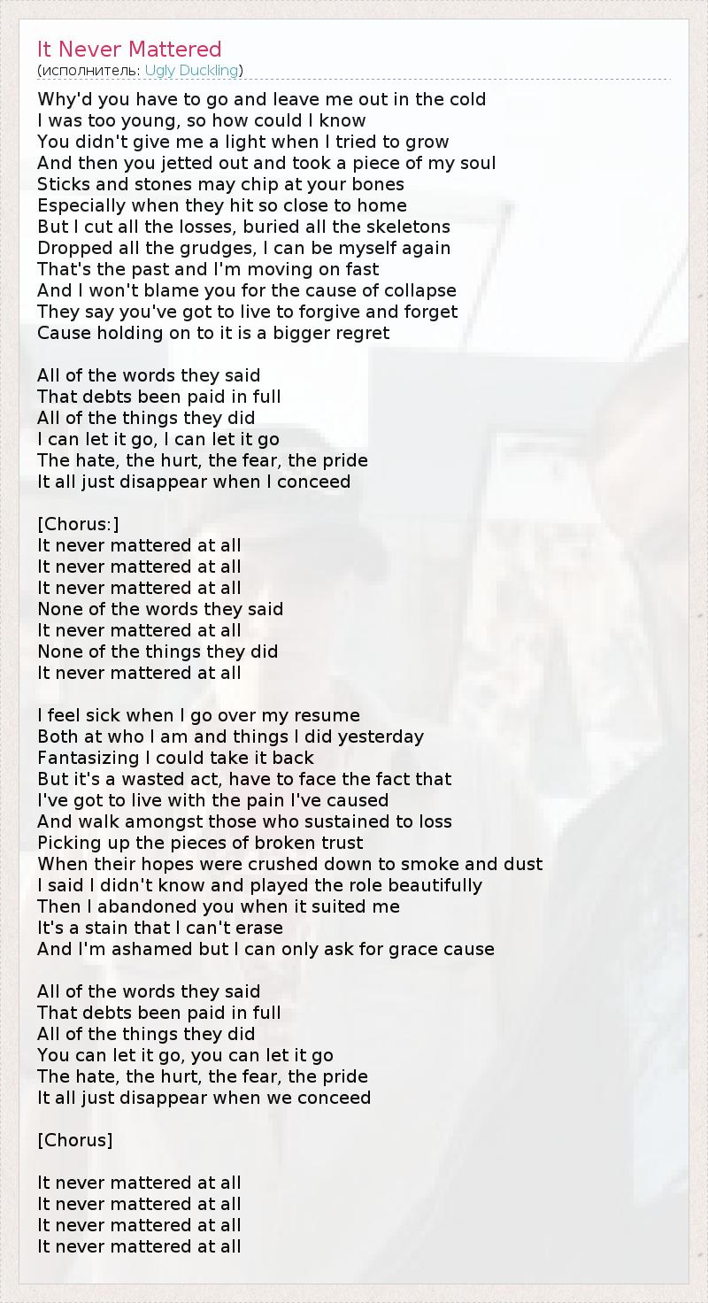 А как ты думаешь, о чем песня "It Never Mattered" ?
