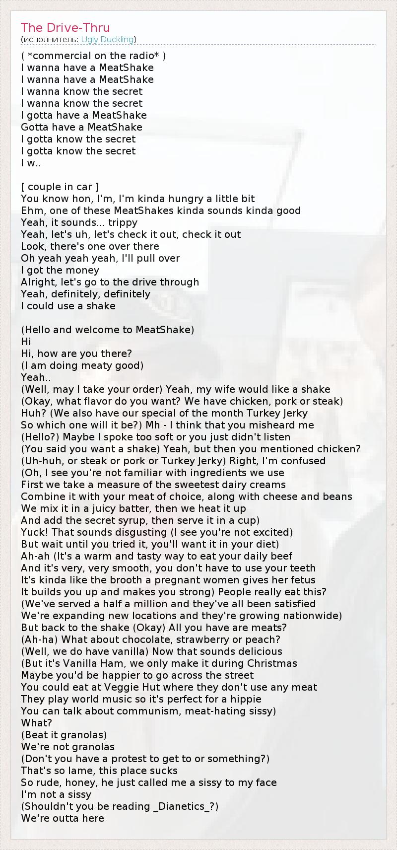 А как ты думаешь, о чем песня "The Drive-Thru" ?
