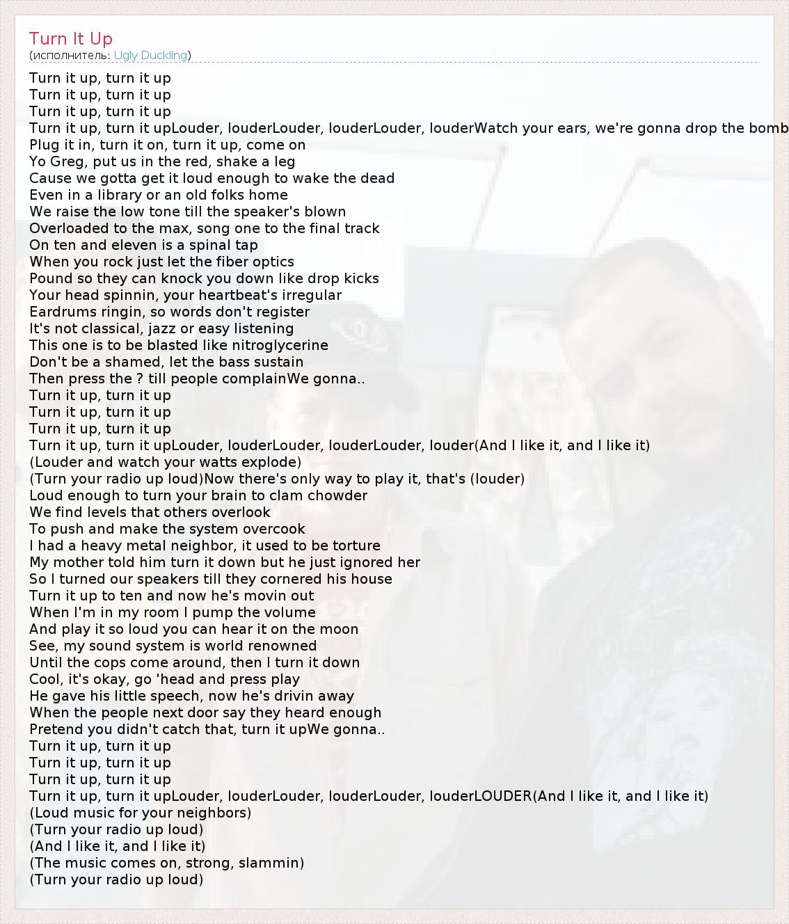 Turn it up, turn it up