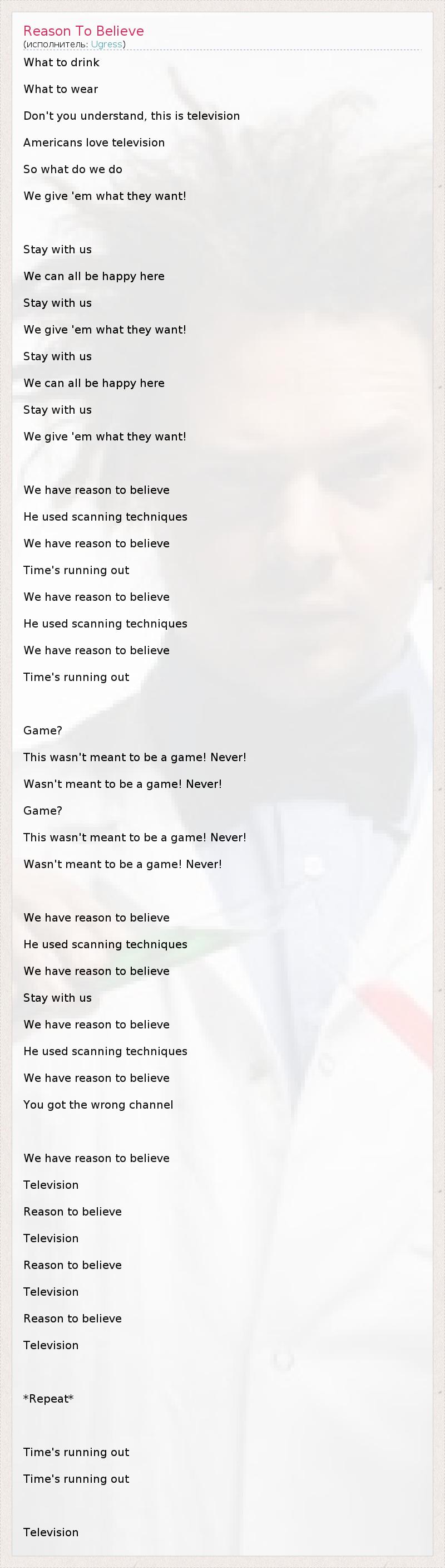 А как ты думаешь, о чем песня "Reason To Believe" ?