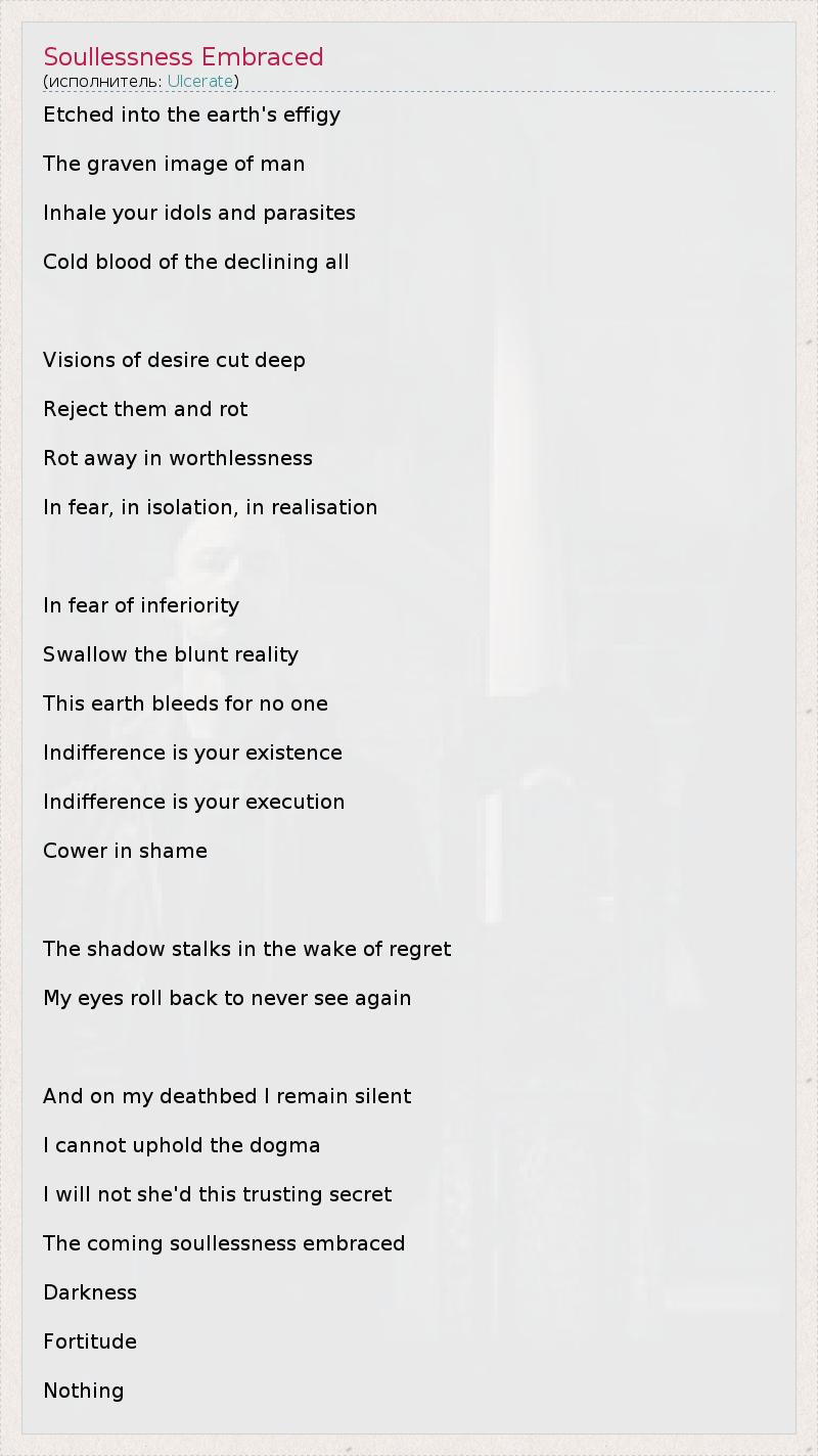 А как ты думаешь, о чем песня "Soullessness Embraced" ?