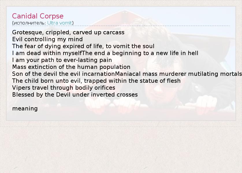 А как ты думаешь, о чем песня "Canidal Corpse" ?