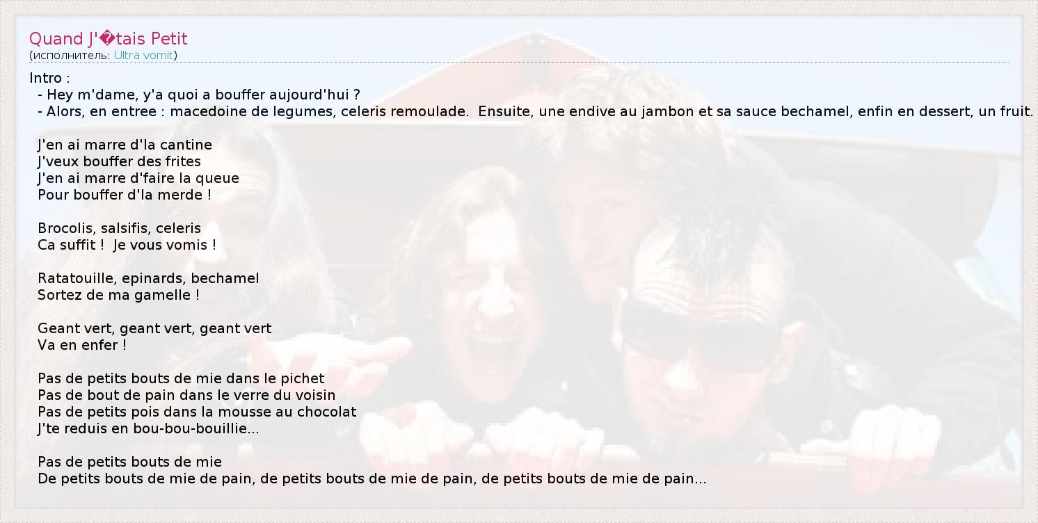А как ты думаешь, о чем песня "Quand J'�tais Petit" ?
