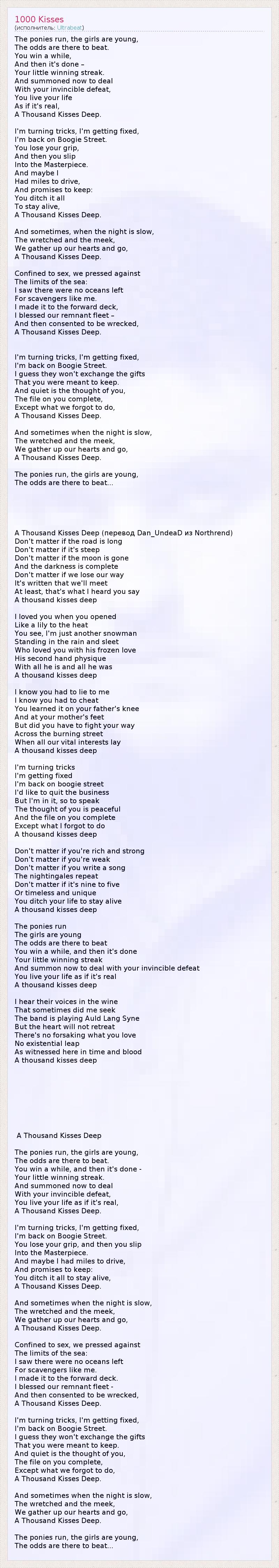 A Thousand Kisses Deep (перевод Dan_UndeaD из Northrend)