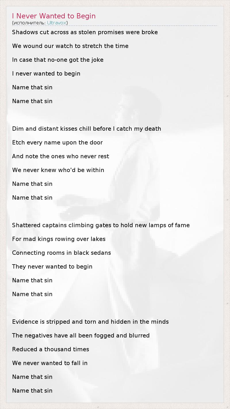 А как ты думаешь, о чем песня "I Never Wanted to Begin" ?