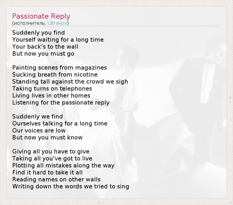 А как ты думаешь, о чем песня "Passionate Reply" ?