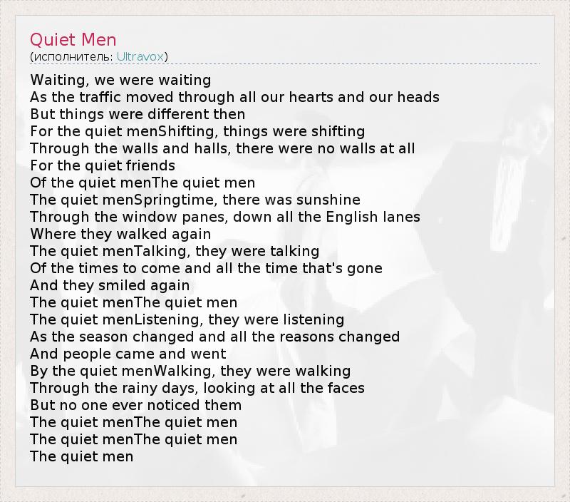 А как ты думаешь, о чем песня "Quiet Men" ?