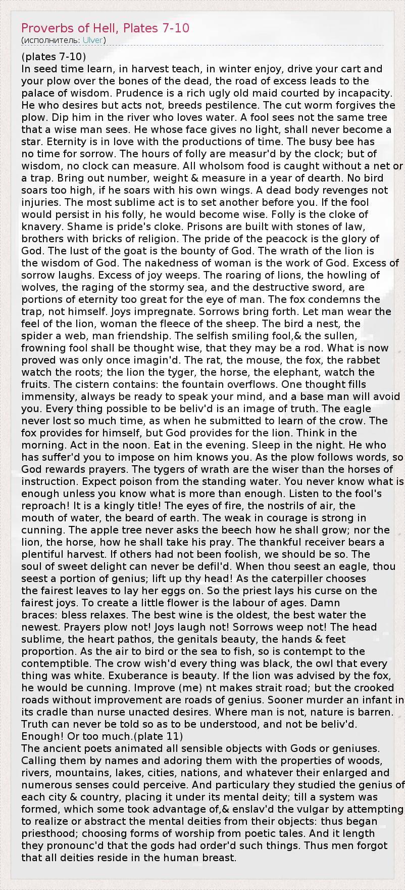 ГлавнаяИсполнителиUlverProverbs of Hell, Plates 7-10