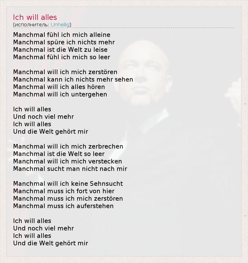 А как ты думаешь, о чем песня "Ich will alles" ?