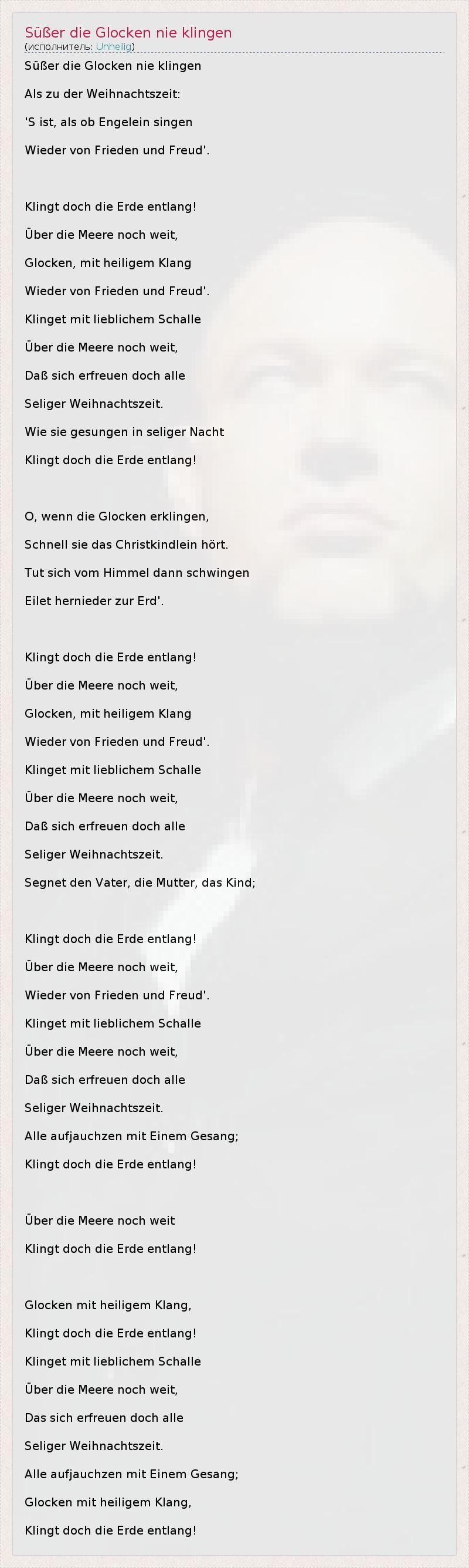 ГлавнаяИсполнителиUnheiligSüßer die Glocken nie klingen