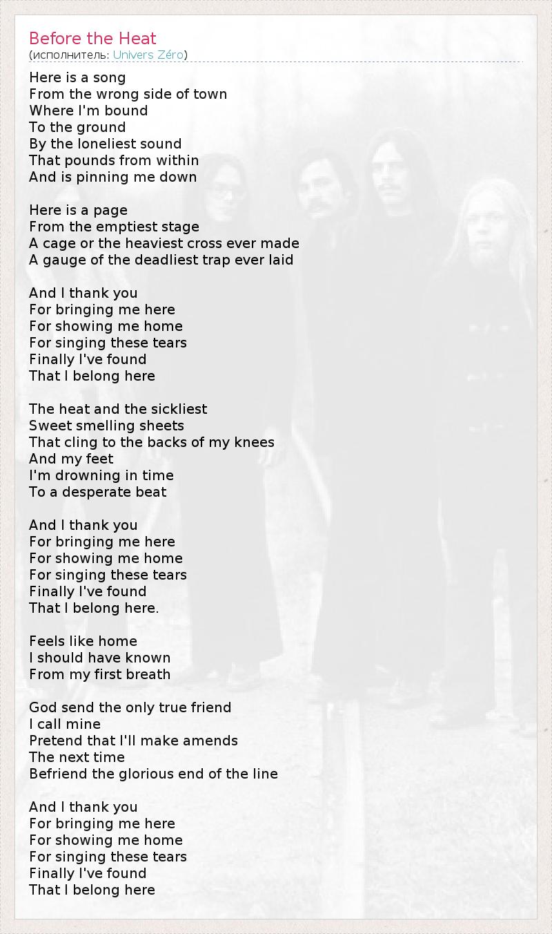 А как ты думаешь, о чем песня "Before the Heat" ?