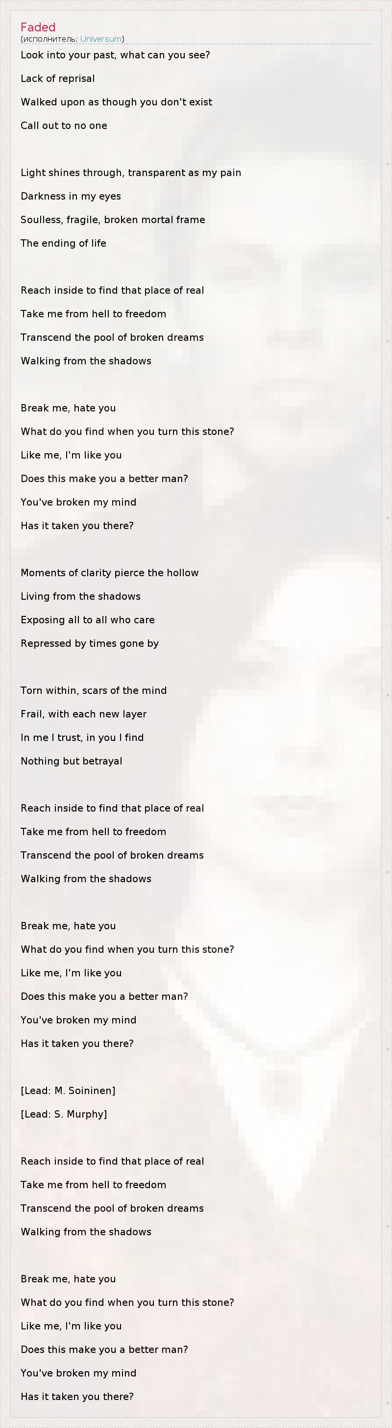 Это интересно:Австралийская melodic death metal-группа из Аделаиды. Образовалась в 2006 году и состояла из 3-х человек.Играя скандинавский мелодик дэт-метал, новую волну американского металла, олд скул-метал и элементы прогрессив-рока, Universum сформировались, чтобы создать их собственную отличную марку Современного австралийского Тяжелого Мелодик-Метала. Группа была основана в 2006 году гитаристом Stephen Murphy,... продолжение