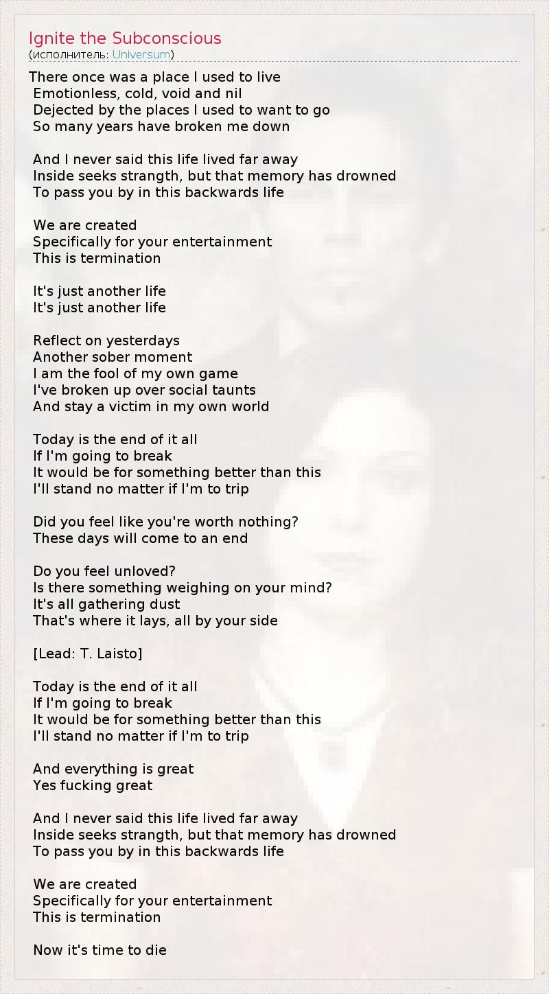 ГлавнаяИсполнителиUniversumIgnite the Subconscious