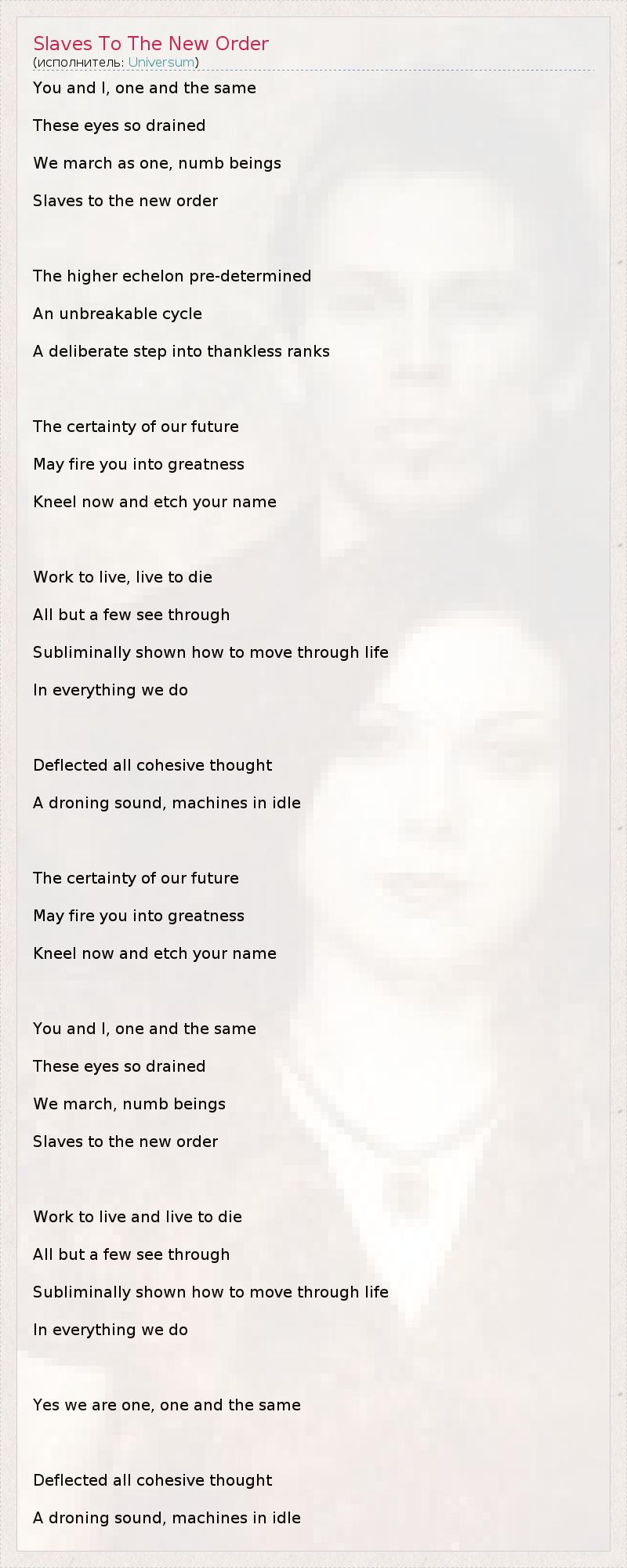 А как ты думаешь, о чем песня "Slaves To The New Order" ?