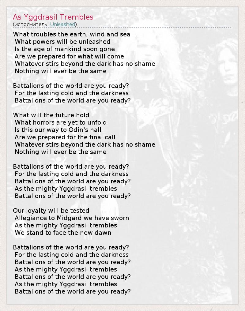 А как ты думаешь, о чем песня "As Yggdrasil Trembles" ?