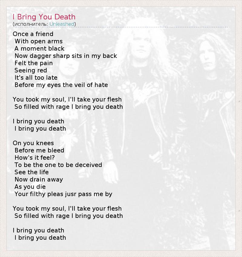 А как ты думаешь, о чем песня "I Bring You Death" ?