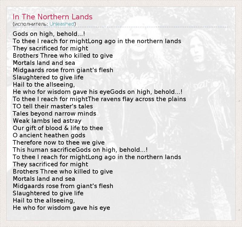 А как ты думаешь, о чем песня "In The Northern Lands" ?