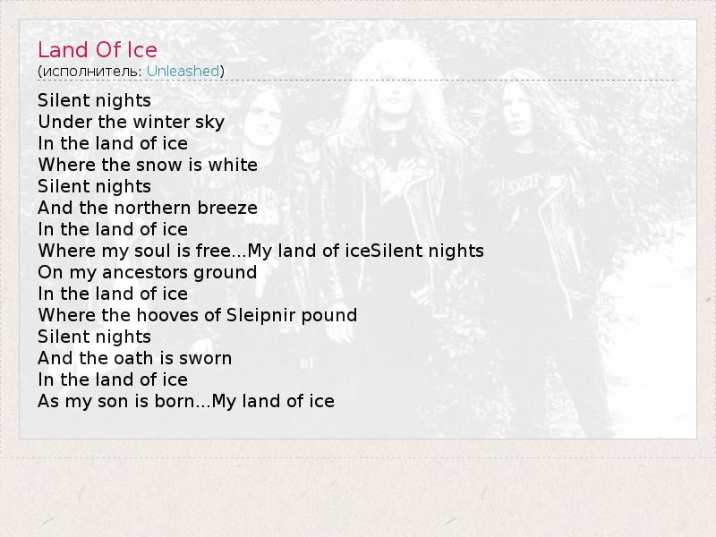 А как ты думаешь, о чем песня "Land Of Ice" ?