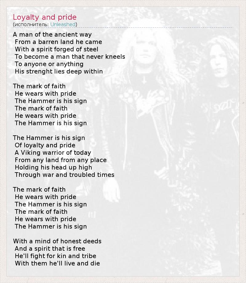 А как ты думаешь, о чем песня "Loyalty and pride" ?