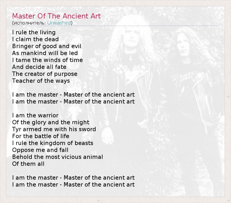 А как ты думаешь, о чем песня "Master Of The Ancient Art" ?
