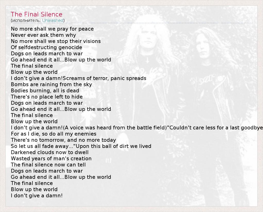 А как ты думаешь, о чем песня "The Final Silence" ?