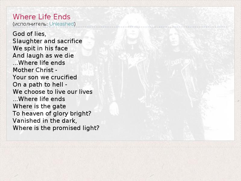 А как ты думаешь, о чем песня "Where Life Ends" ?