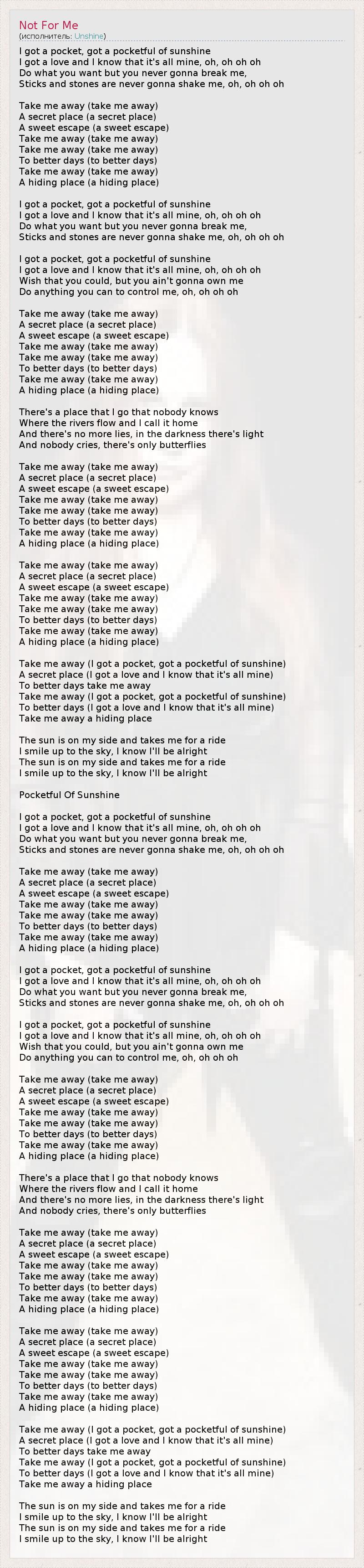 Take me away (I got a pocket, got a pocketful of sunshine)