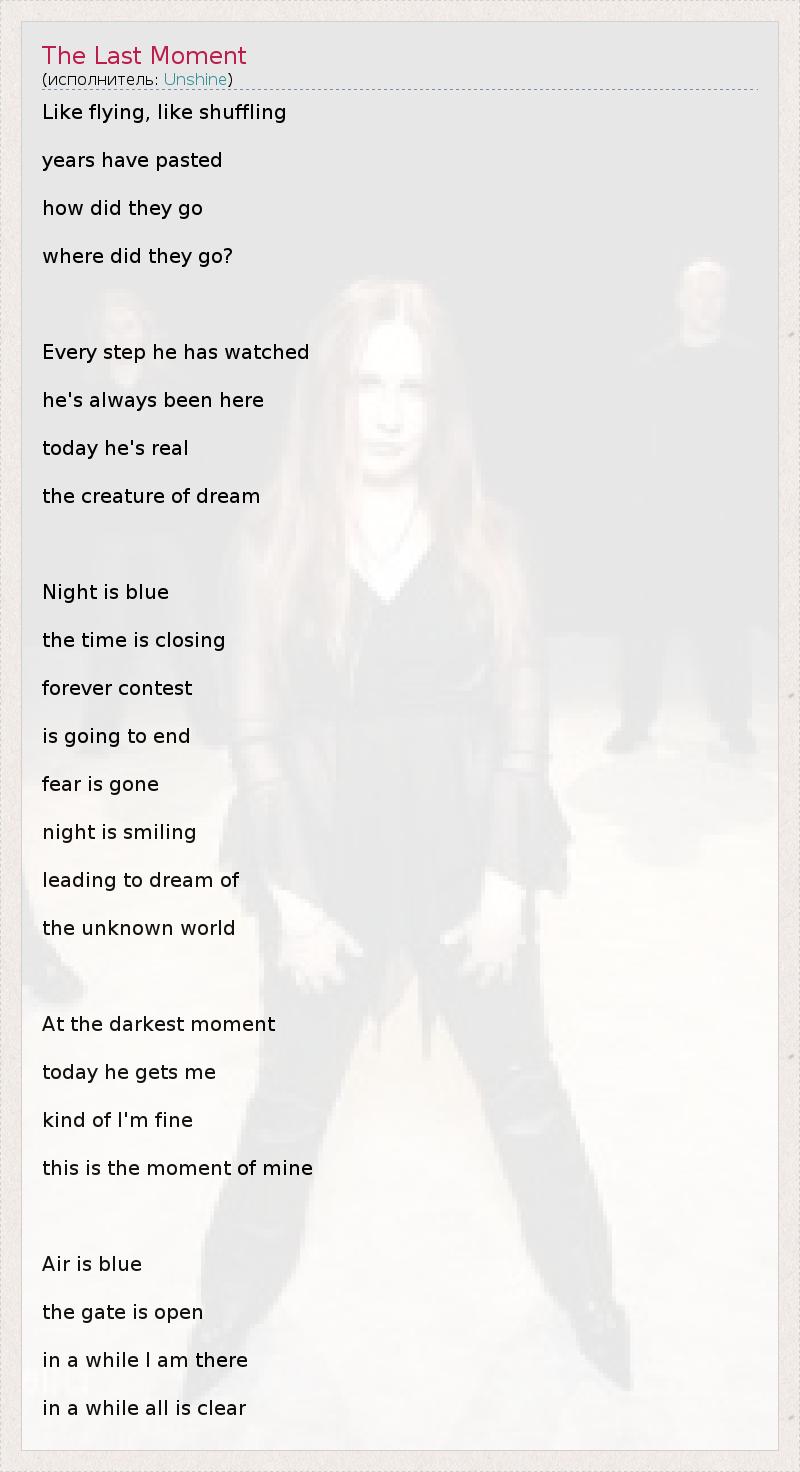 А как ты думаешь, о чем песня "The Last Moment" ?