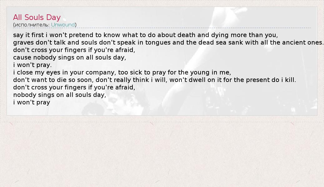 А как ты думаешь, о чем песня "All Souls Day" ?