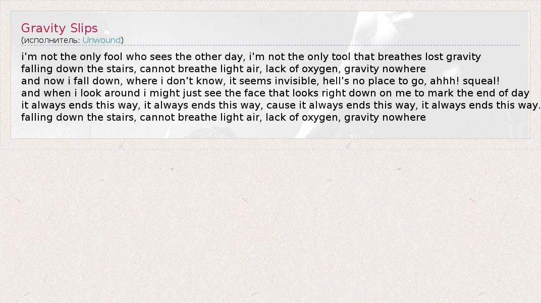 А как ты думаешь, о чем песня "Gravity Slips" ?