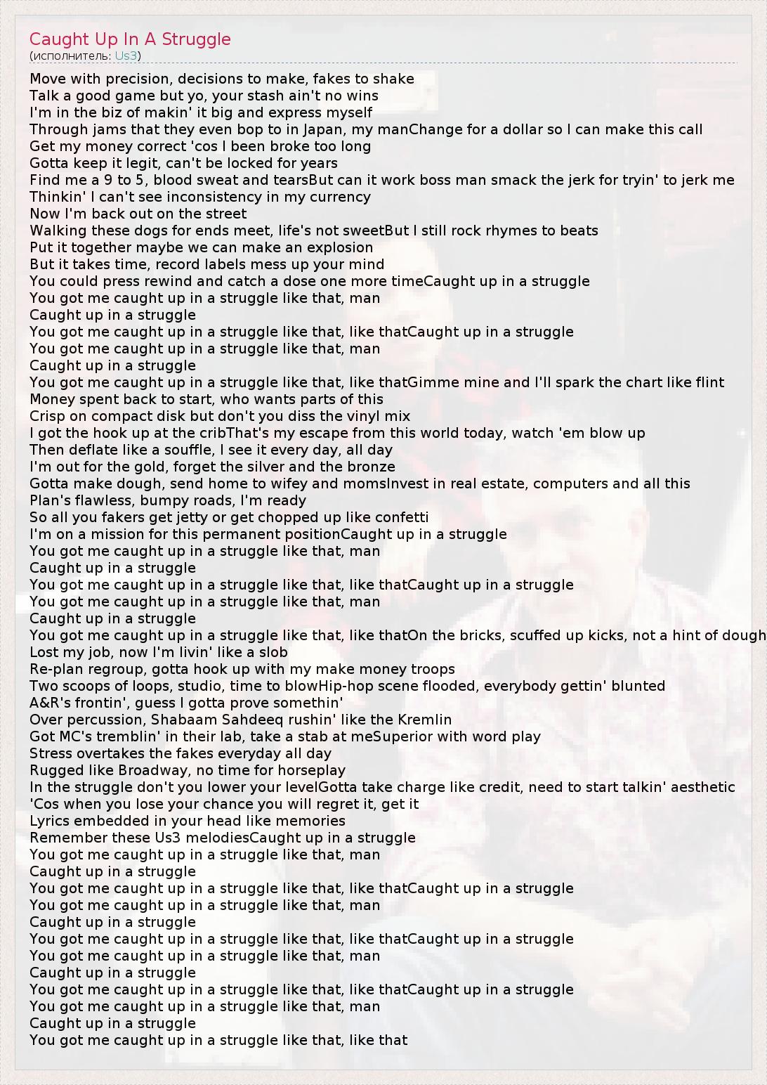You got me caught up in a struggle like that, like thatCaught up in a struggle