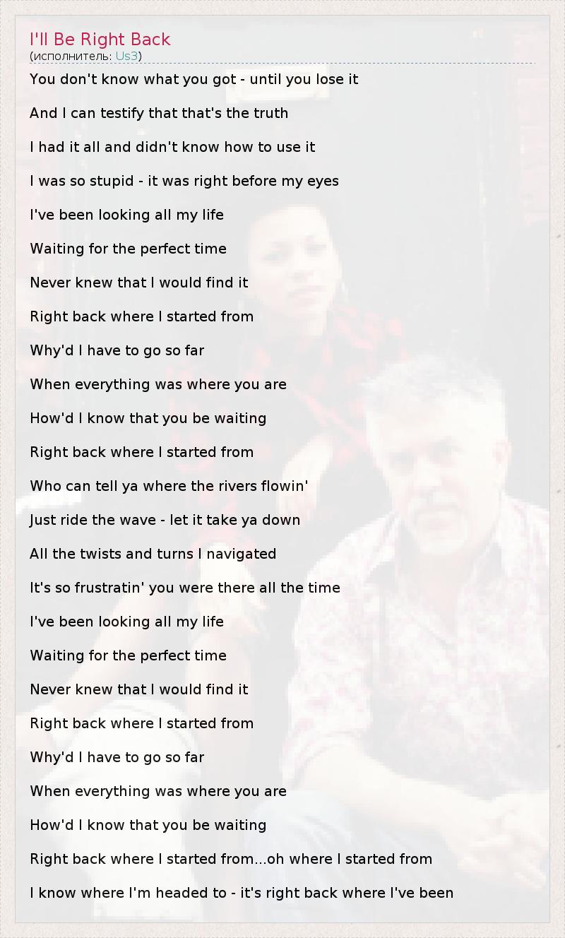 ГлавнаяИсполнителиUs3I'll Be Right Back