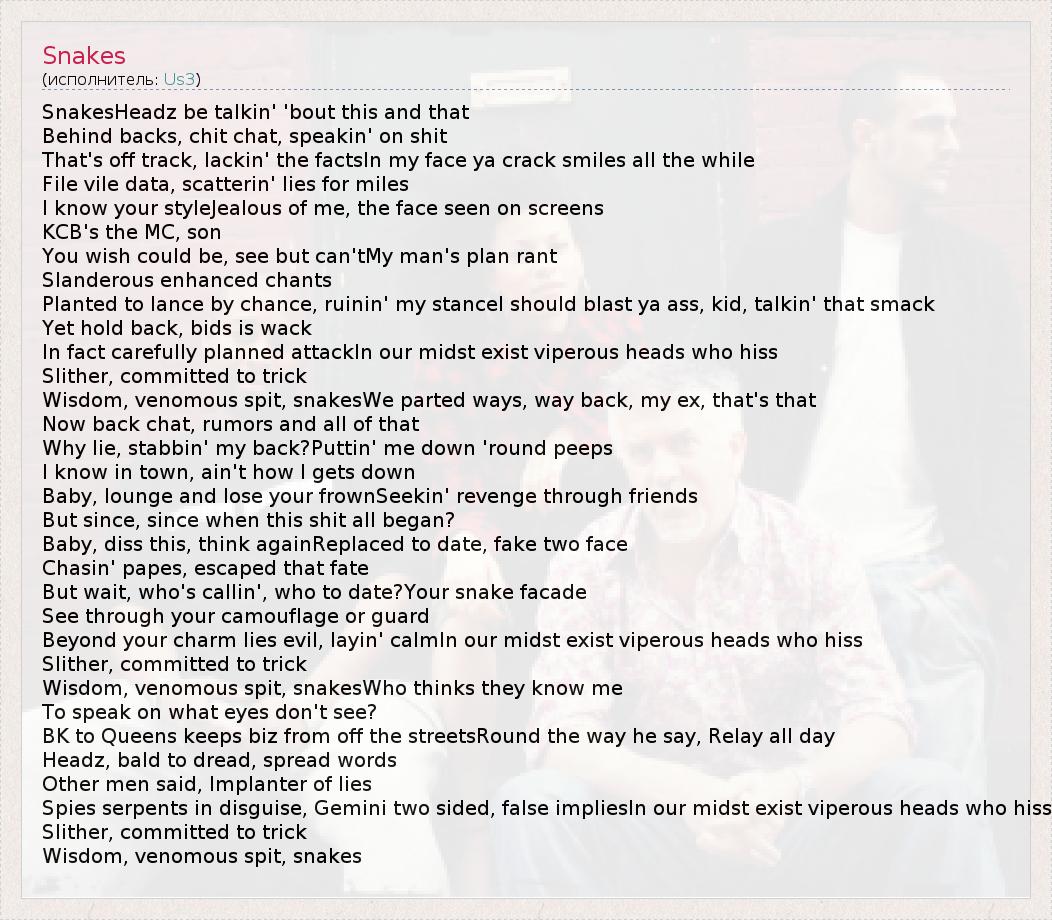 Beyond your charm lies evil, layin' calmIn our midst exist viperous heads who hiss