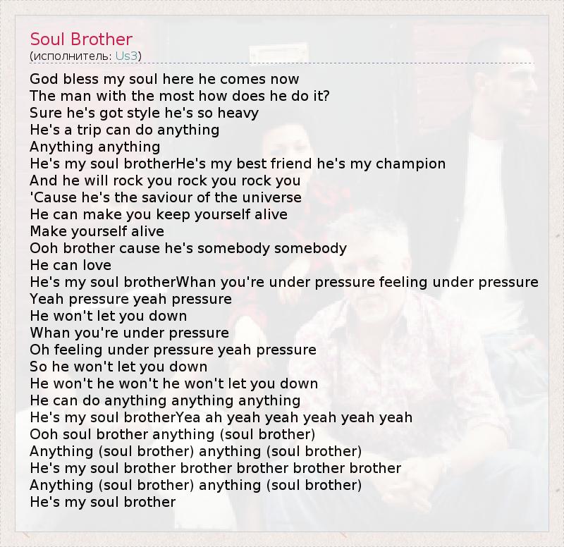 А как ты думаешь, о чем песня "Soul Brother" ?