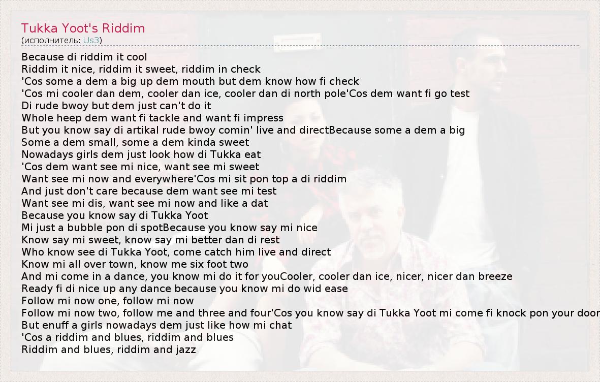 ГлавнаяИсполнителиUs3Tukka Yoot's Riddim