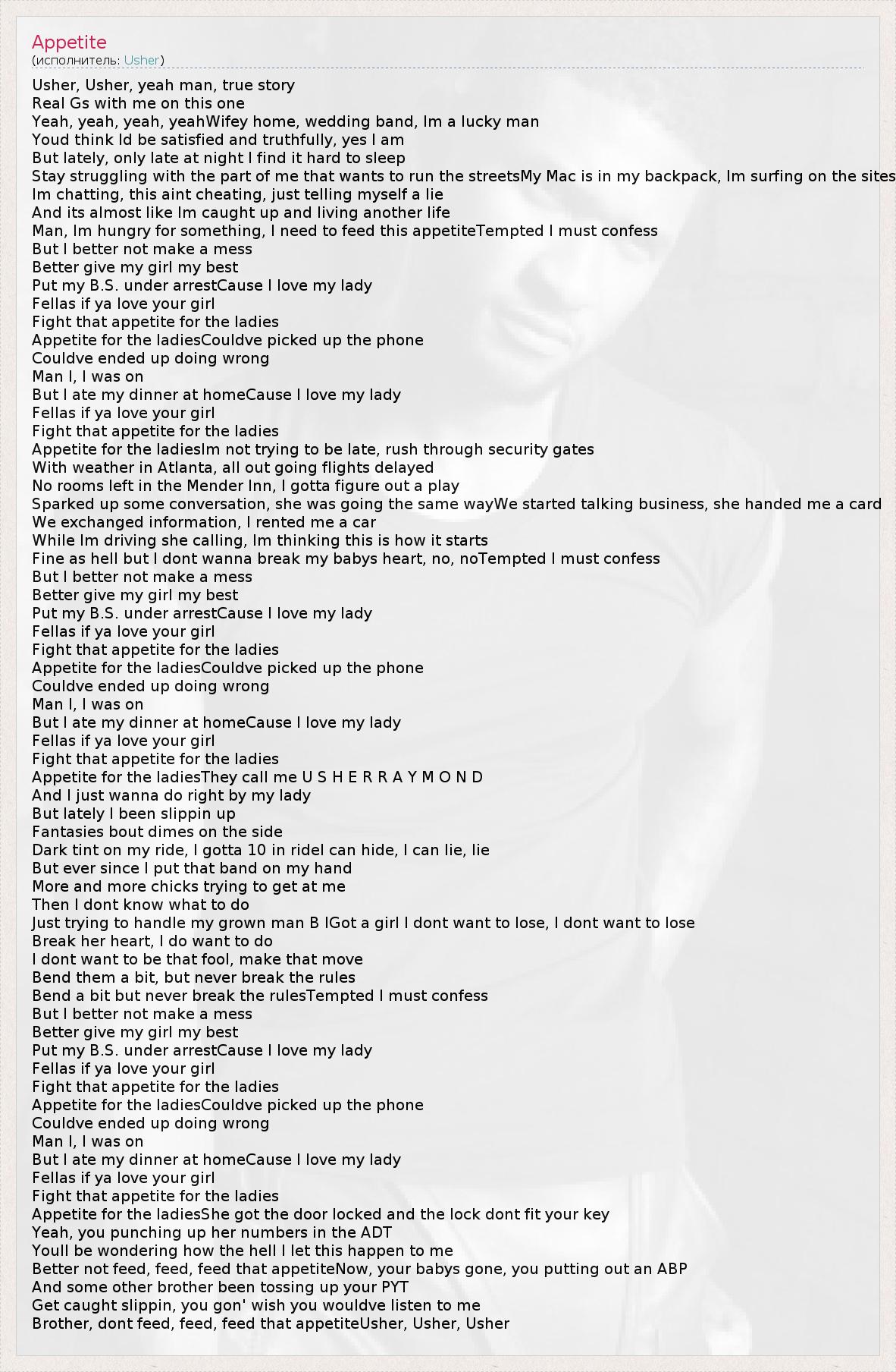 Brother, dont feed, feed, feed that appetiteUsher, Usher, Usher