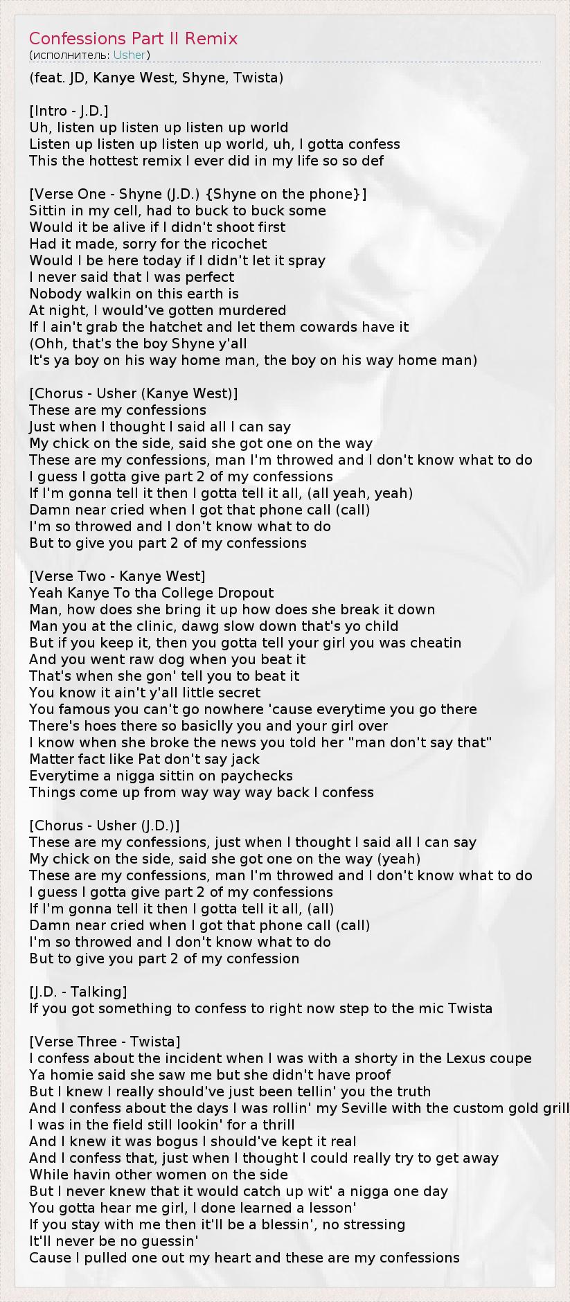 А как ты думаешь, о чем песня "Confessions Part II Remix" ?