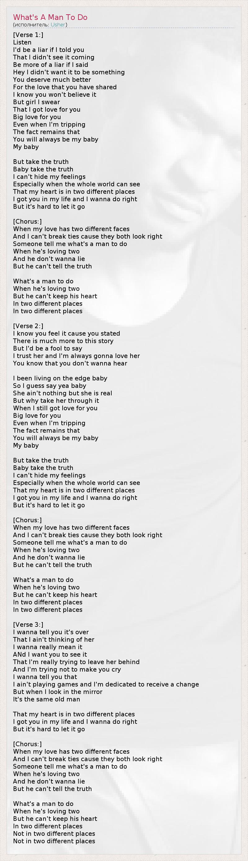 А как ты думаешь, о чем песня "What's A Man To Do" ?