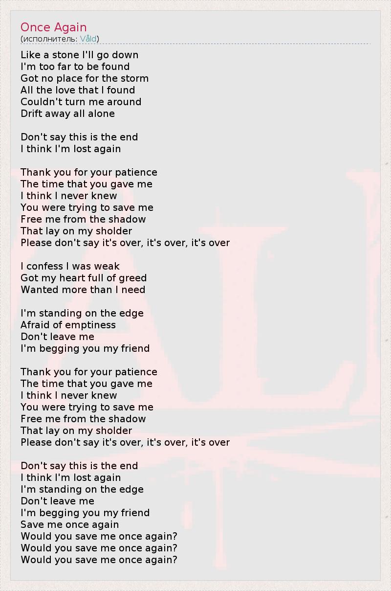 А как ты думаешь, о чем песня "Once Again" ?