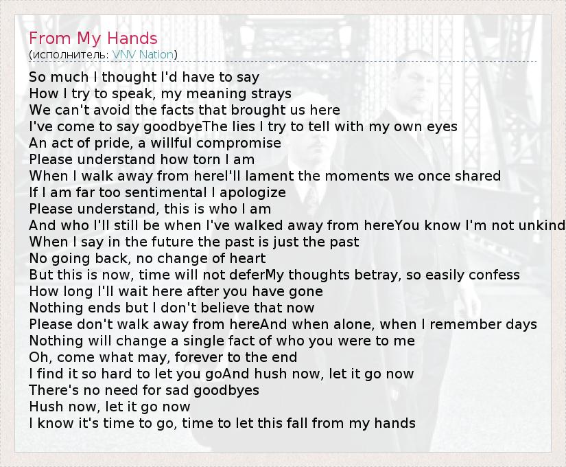 А как ты думаешь, о чем песня "From My Hands" ?